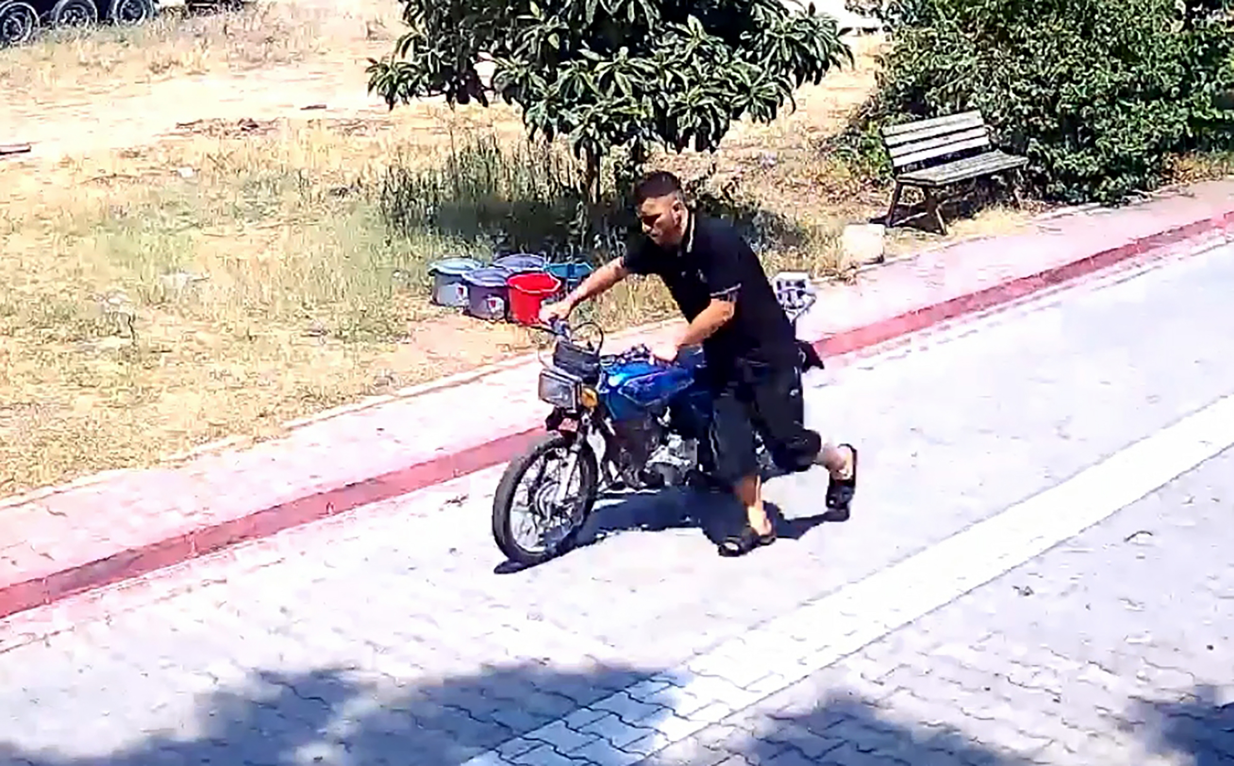 Caddede yürüyen iki arkadaş, bir apartmanın otoparkındaki E.A.’nın (26) motosikletini fark edip, çalmaya karar verdi. Şüphelilerden Mehmet D. çevrede gözcülük yaparken, Kadir T. ise kontak anahtarı üzerinde olan motosikleti otoparktan çıkardı. Motosiklete binen şüpheliler, olay yerinden ayrıldı. O anlar ise apartmanın güvenlik kamerasına yansıdı.