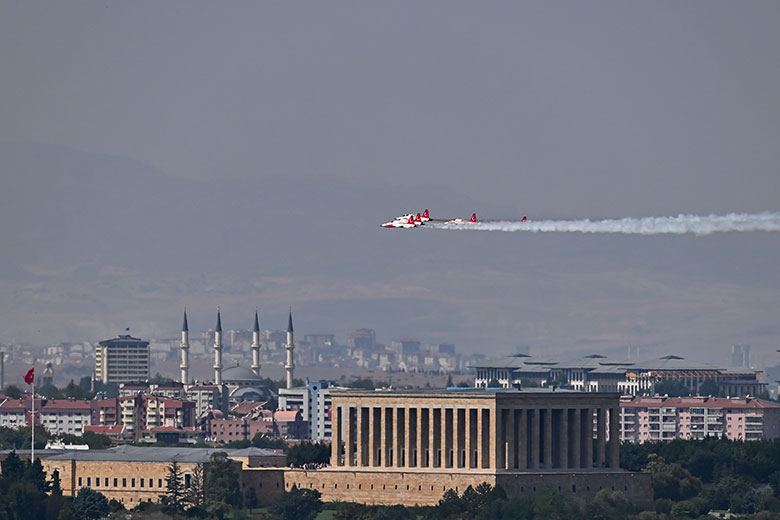 Türk Hava Kuvvetleri'nin gözde akrobasi timi olan Türk Yıldızları, 30 Ağustos Zafer Bayramı dolayısıyla Anıtkabir üzerinde anlamlı bir saygı uçuşu gerçekleştirdi.