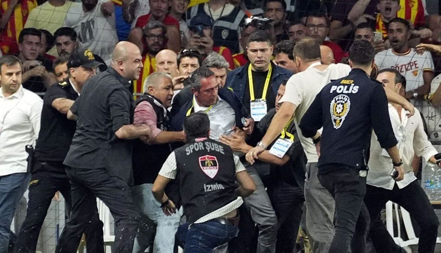 İkinci yarı başlamadan önce saha kenarına inerek tribündeki Fenerbahçeli taraftarların yanına giden Fenerbahçe Kulübü Başkanı Ali Koç'a tribünlerden yabancı maddeler atıldı. Maçın 49'uncu dakikasında protokol tribününe dönerken Ali Koç'a, akreditasyon kartı bulunan Göztepeli yönetici saldırdı.